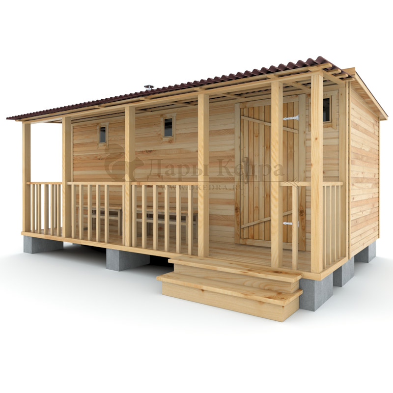 Каркасно-щитовая баня из кедра «Стандарт» с верандой