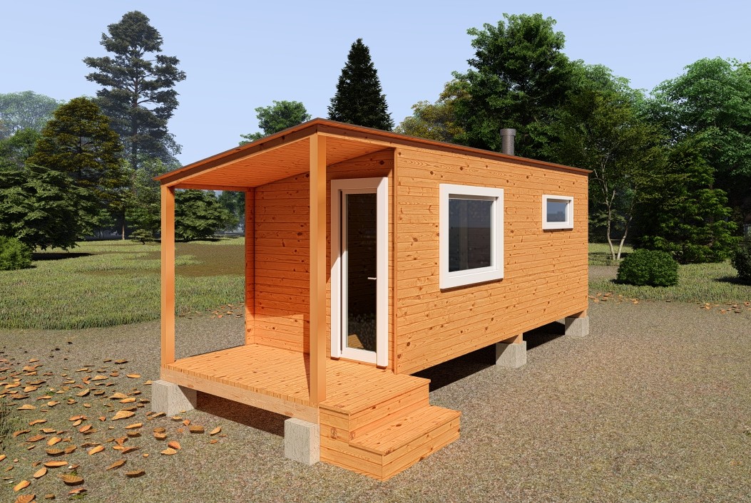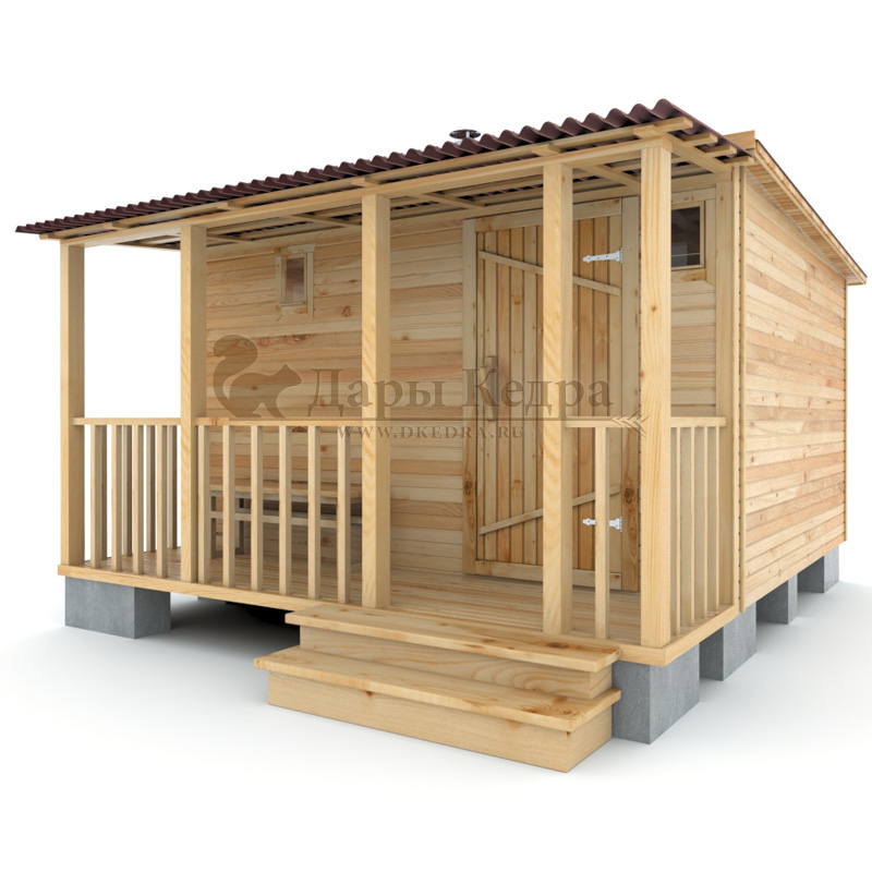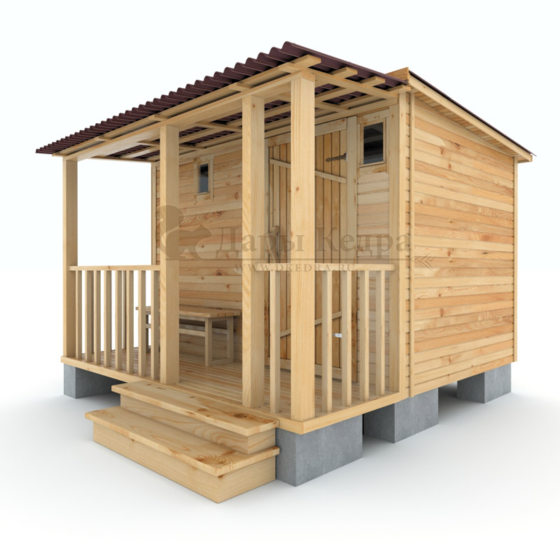 Каркасно-щитовая баня из кедра «Мини» с верандой