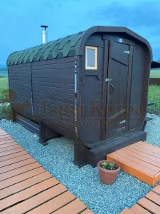 Мобильная баня-бочка с каждым днем набирает все большую популярность благодаря её возможной транспортировки куда угодно: на отдых в лесу, на рыбалку или на побережье реки