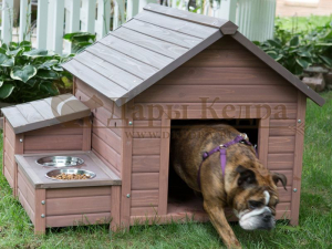 Веранда украсит будку, а также станет дополнительной лежанкой для питомца на свежем воздухе.