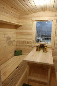 Столик в раздевалке будет удобен при длительном пребывании в бане.