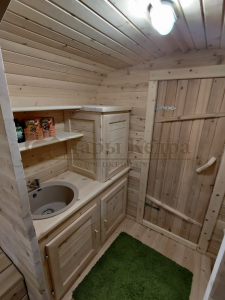 Для удобства размещения бытовых мелочей обязательно добавьте небольшие шкафчики с дверцами (2 шт) - 15 000 руб и верхние открытые полки (2 шт) - 5 000 руб. Всё необходимое в бане или доме должно быть всегда под рукой!