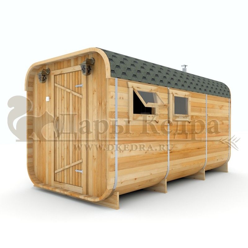 Баня-бочка представляет собой конструкцию в виде бочонка без углов. Такая форма считается оптимальной для равномерного распределения пара по всей внутренней поверхности парной. Таким образом, пар не скапливается в одном месте, а циркулирует по всему объему. Соответственно, круглая (квадратная, овальная) баня экономичная: топится быстро, требует дров мало.